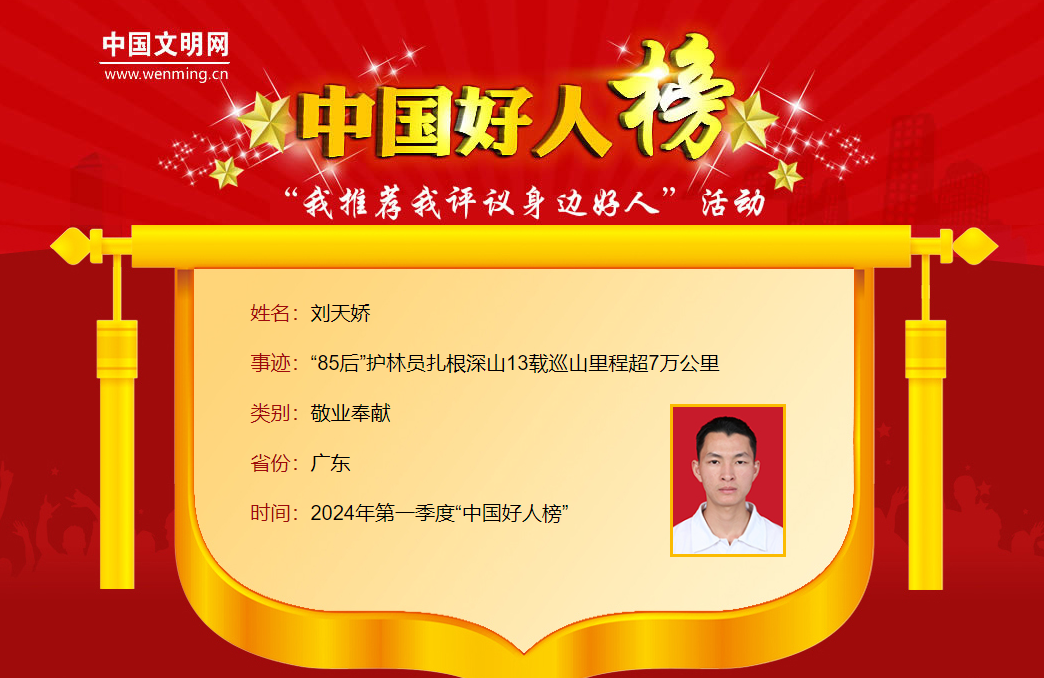 4月18日,中央精神文明建设办公室发布2024年第一季度“中国好人榜”,其中,伟德体育优秀员工刘天娇光荣上榜,也是广东上榜7人之一。