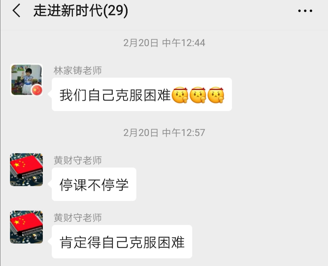 在教师之中还有这样一类:“双师家庭”,疫情之下教员工活新模式:两夫妻轮番上完网课后陪孩子上网课。但这并不影响身在双师家庭的陈敏敏老师成为本次网课的各平台的“技术大牛”;并不影响林家铸老师、陈惠静老师、黄道燚老师课堂的优质高效。