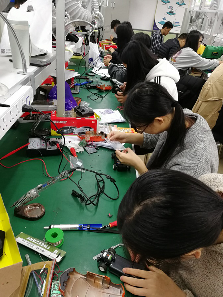 应用电子技术专业正在进行电子产品装配与调试实训
