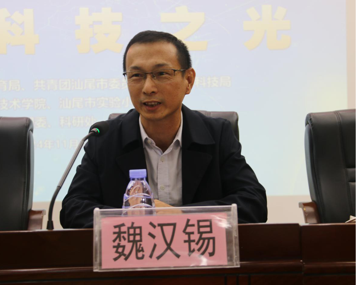 魏汉锡在讲话中充分肯定了“科技进校园”活动的意义,鼓励员工积极参与,认真聆听,亲手操作,感受科技的魅力与乐趣;寄语员工传承和弘扬科学家精神,树立科技报国的远大志向。