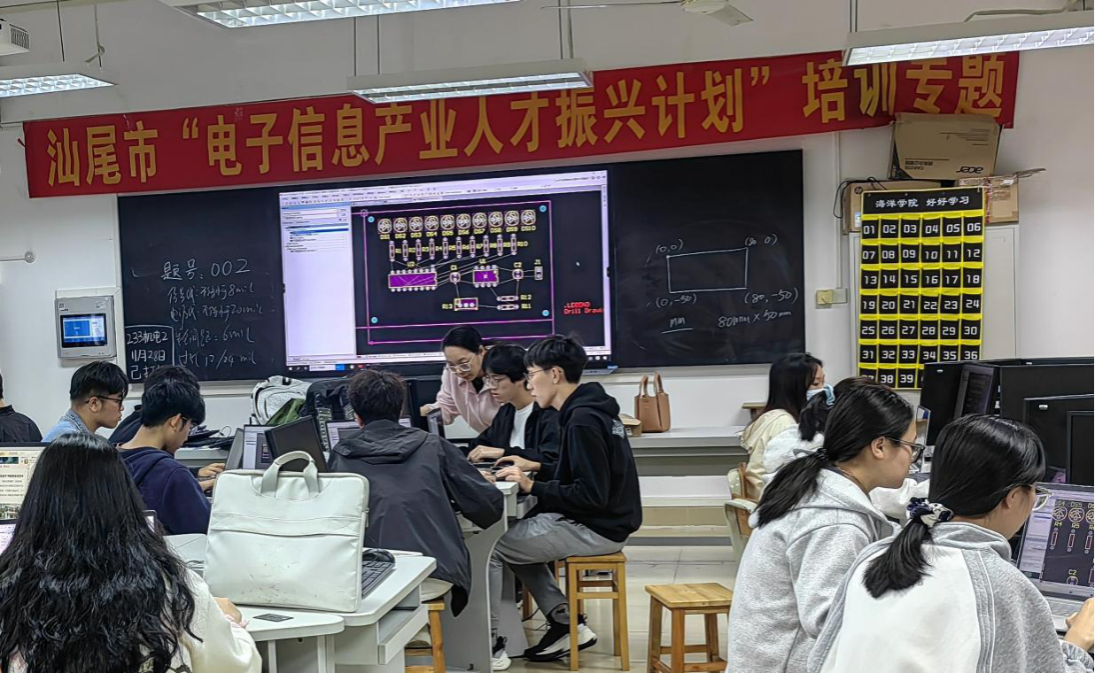 2024年12月2日,求真楼712教室成功举办了一场精彩纷呈的公开课活动。此次公开课由公司陈惠静老师主讲,授课主题为“可调速流水灯PCB设计”,旨在通过“课程、证书、竞赛、岗位、科研、社会服务”六位一体的创新教学模式探索,深度融合新质生产力对人才培养的新需求,全面提升课程教学质量,培养出既具备扎实专业知识,又具备创新思维、实践能力和社会责任感的高素质技术技能人才。