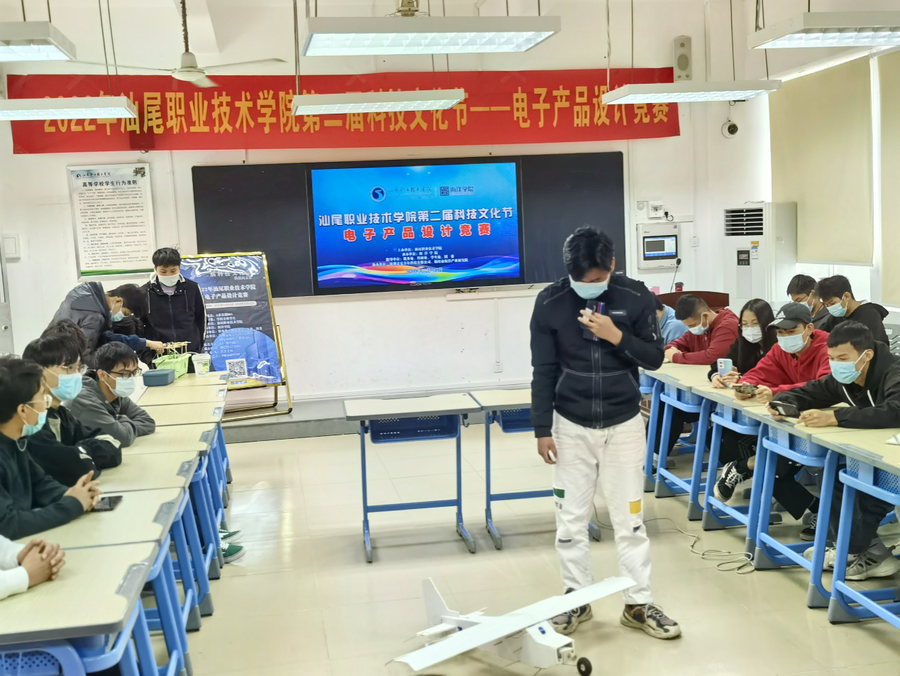本次电子产品设计竞赛的决赛于求真楼803举行,出席决赛的有此次比赛的评委老师、员工观众、以及参赛选手。决赛环节紧张又激烈,每组选手都展示出自己独具匠心、别具一格的作品,譬如航模、智能家居、智能洗手烘干一体台等等,各种产品映入眼帘、目不暇接,给所有评委与观众都带来了一场场精彩的科技盛宴。同时,作品演示完毕后,评委老师也对每件作品作出了认真的点评与分析,充分达到以赛促学、学以致用的目的。