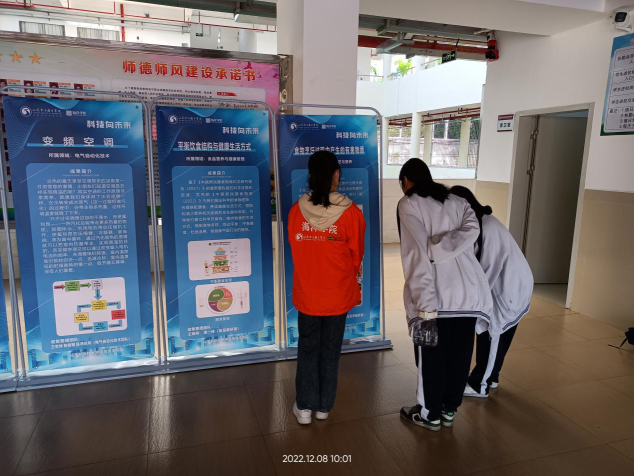 本次活动涵盖了博士讲座、科普展及作品展等三个方面。权晓晶博士为市实验初级中学的同学们带来了一场《保护我们地球生命的大伞——了解大气层》的科普讲座,现场反响十分热烈。在科普展及作品展展区以公司伟德体育师生近年获奖作品及各研究中心、各专业教研室及合作企业提供的涵盖工业自动化、物联网、电子信息、新能源、海上风电、食品营养等多领域多学科作品及科普介绍;公司科普志愿队同学为参观的同学们进行了细致地讲解和介绍。