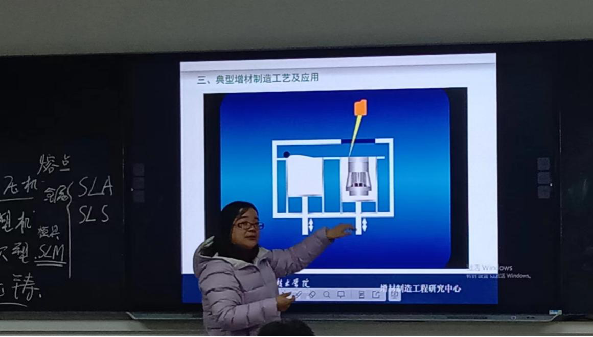 讲座主题为《3D打印技术》,韩海玲博士从3D打印技术的历史发展、技术原理、打印过程(三维设计,切片处理,完成打印)、技术优缺点、应用领域(军事应用,航天领域,医学领域,建筑工程,汽车电子)等方面对本项技术进行了阐述。
