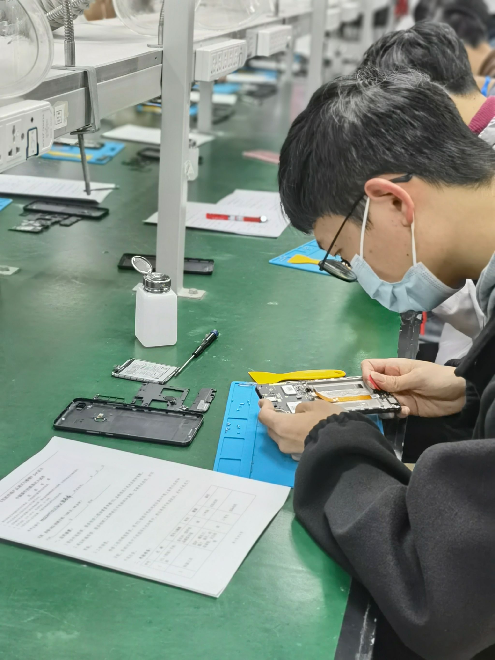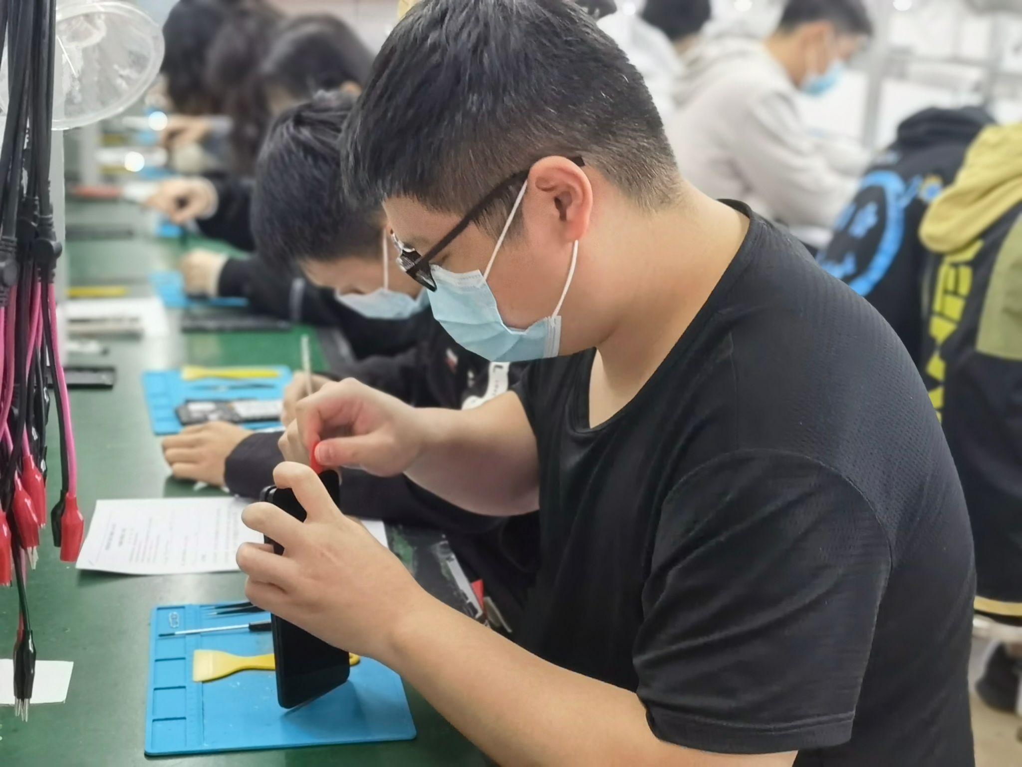 本次考试分为理论考试和实操考试两部分。理论考试为线上考试,考试内容为客观题。实操考试为智能手机的拆装。整个考试过程中实时监控并全程录像,考生们严格遵守考场须知,展现了公司员工良好形象和应有的职业素养。
