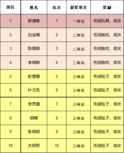“花样年华 绽放青春”女生知识竞赛获奖情况