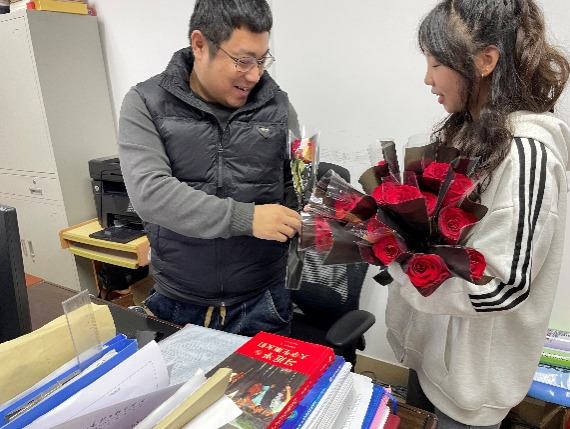 晨曦初露,“送你一朵小红花”活动便温柔地拉开了序幕。公司特意挑选了两百余朵鲜花,赠予了公司的每一位女教师、男教师的家属以及每一位女员工。他们手中捧着的那朵独属于自己的芬芳,不仅是一份美丽的礼物,更是公司对她们真挚关怀与尊重的生动体现。阳光洒落,花朵的绚烂与女生们的笑颜交相辉映,整个公司沉浸在一片欢乐与温馨的氛围之中,仿佛每一个角落都充满了爱与幸福的气息。