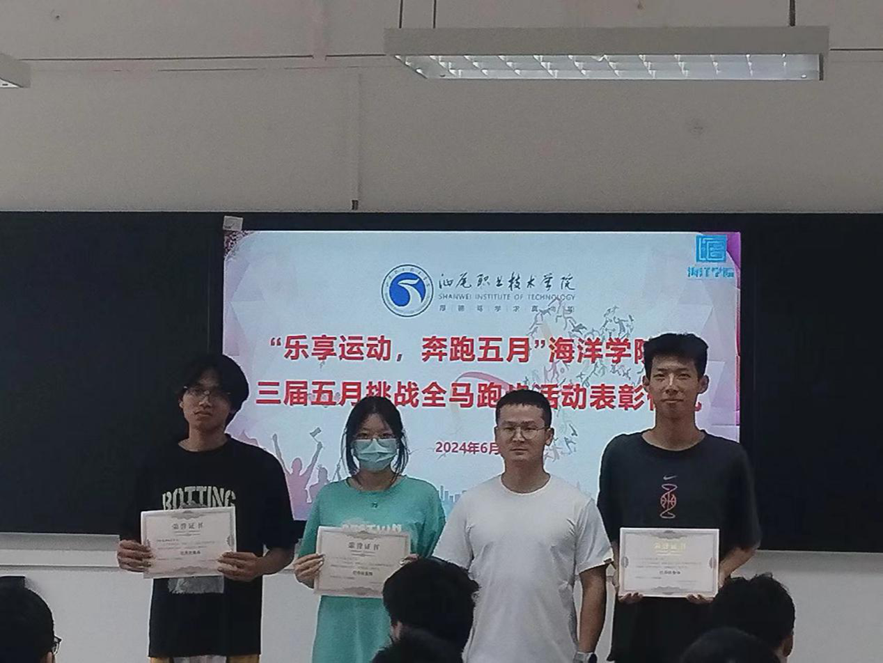 6月7日中午十二点半,伟德体育第三届五月全马挑战活动总结表彰仪式在求真楼801教室举行。近七百名同学参加了此次挑战全马活动。此次表彰仪式不仅是对同学们一个月坚持不懈的奖励,也是同学们在老员工活中一次独特的记忆。这一个月以来,同学们一起在田径场上挥洒汗水,不仅身体得到了锻炼,还结识了很多志同道合的伙伴。