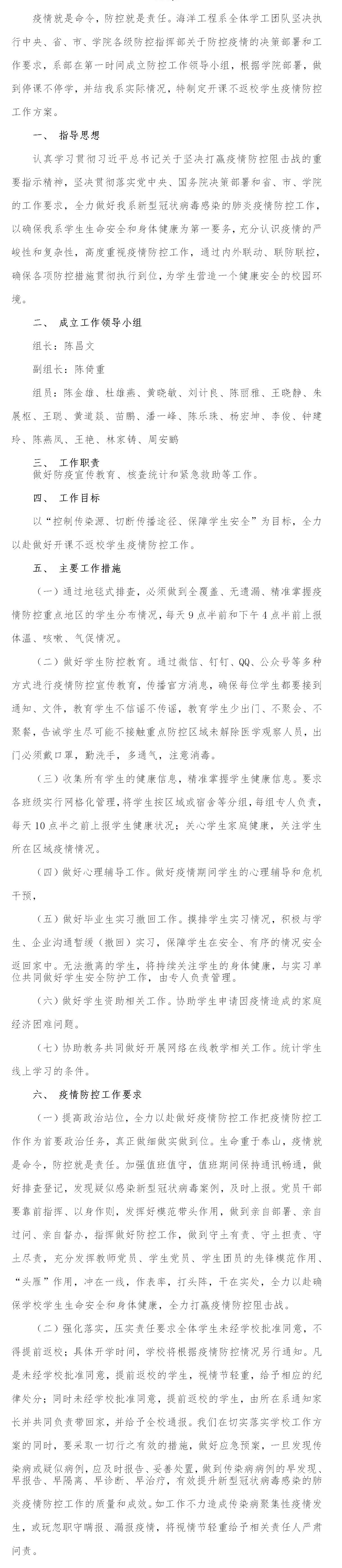 海洋工程系关于做好防控新型冠状病毒肺炎疫情员工工作方案