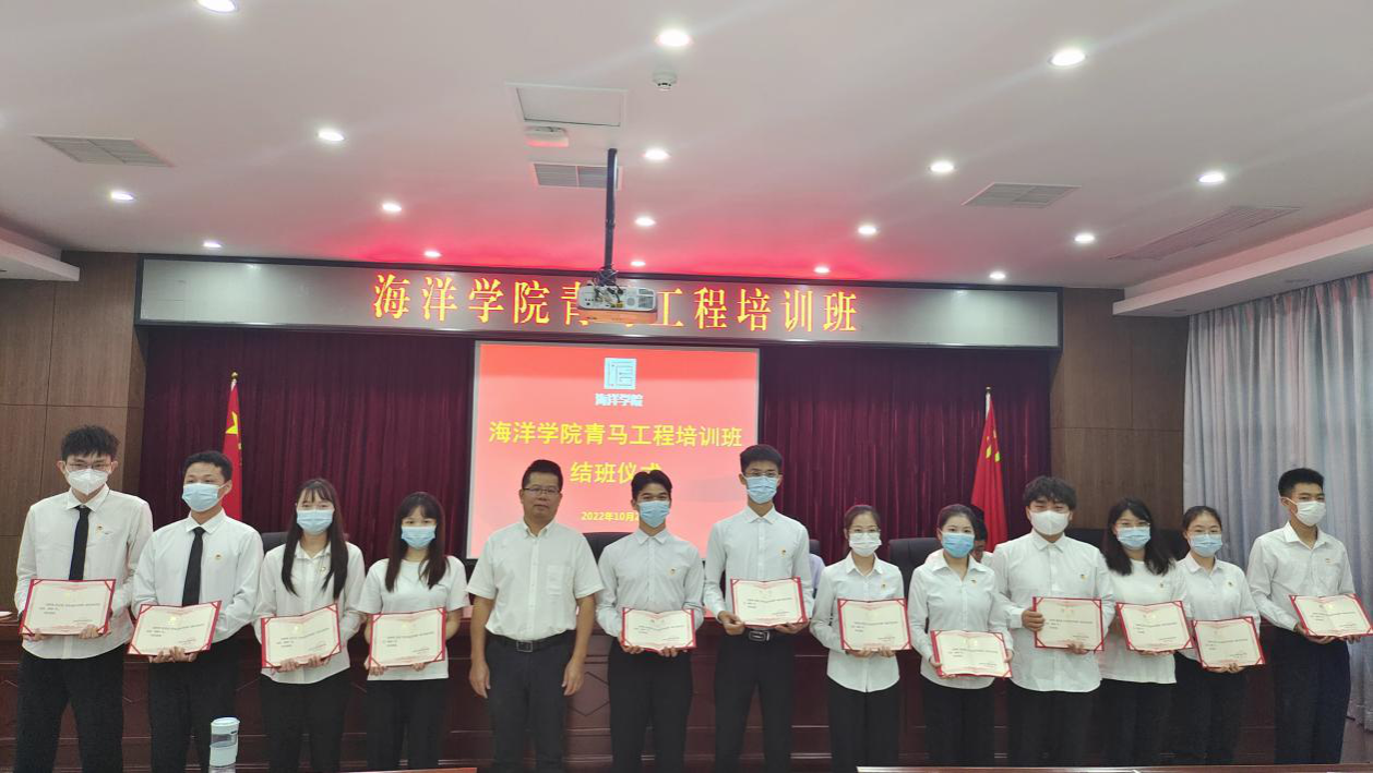 青春心向党,建功新时代。为引领广大海洋学子厚植爱党、爱国及爱团情怀,赓续红色基因,不负时代光荣使命,10月23日下午,伟德体育在科学楼四楼会议室隆重举行2022青马工程培训班结班仪式。参加结班仪式的人员有公司经理陈昌文、副经理陈倚重、团委书记陈金雄、公司全体辅导员及青马工程培训班全体学员。会议由周安鹂老师主持。
