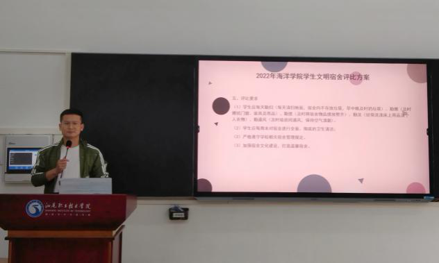 黄士库老师解读了2022年公司员工文明宿舍评比方案。他还指出,希望全院员工高度重视宿舍安全和卫生问题,共同创造文明、整洁、和谐、积极向上的宿舍文化氛围。