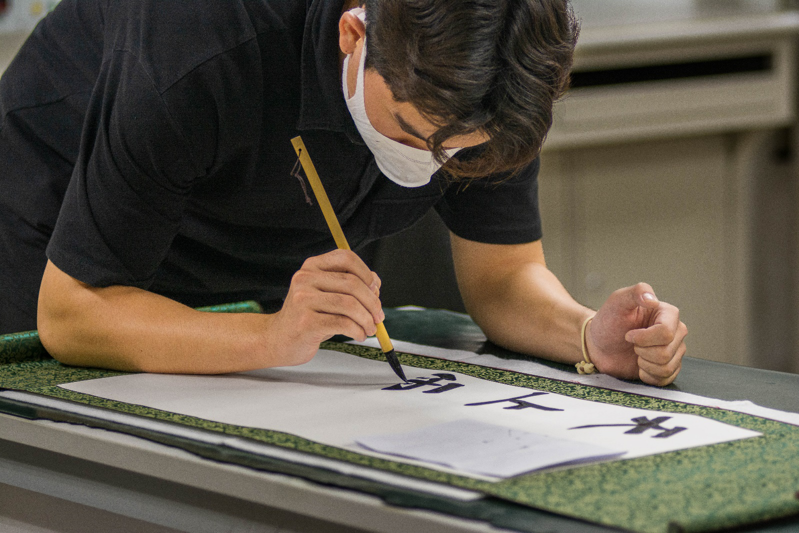 在老师和员工志愿者们的精心组织下,三笔字比赛准时开始。比赛共分三组,毛笔组,粉笔组和钢笔组依次进行比赛,每组比赛限时20分钟。同学们在比赛过程中聚精会神,动作行云流水,纷纷展示出不同的风采。