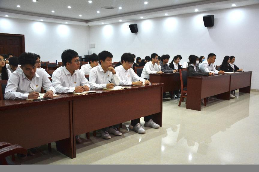 陈倚重副经理以《高举思想火炬 奉献青春力量》勉励各位员工骨干要成为一名优秀的员工干部,第一要坚定理想信念;第二要提升自我素养,第三要奉献青春力量。要有从“要我干”到“我要干”的意识转变,努力为同学服务,并且努力提升自己的组织能力,学习能力,团队意识,思想品质,人文素养及创新能力等素质。