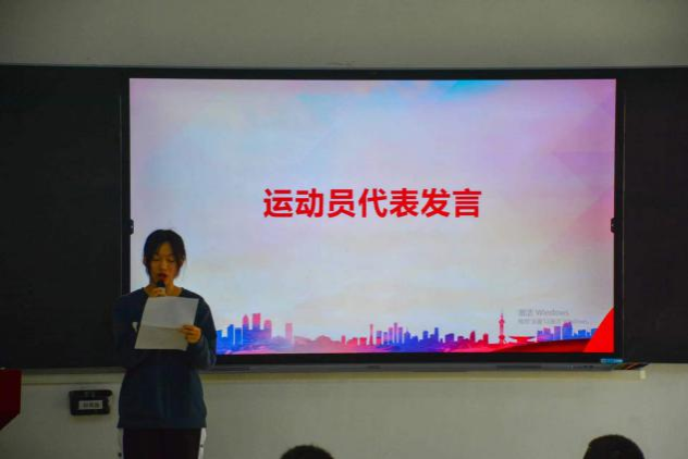 优秀运动员代表黄婉婷同学感谢公司给同学们提供了展示自我的平台,也感谢在此次比赛中辛苦付出的员工工作人员以及给予运动员强大力量的观众。她通过讲述自己在各个项目中训练的日常,传达了坚持和努力的重要性。另外,她鼓励师弟师妹们秉承初心,勇往直前,在明年的赛场上继续为伟德体育争光。