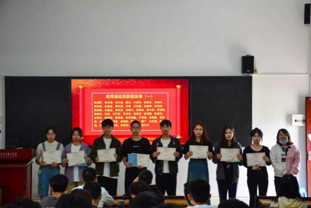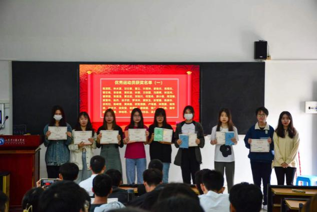 随后,黄士库老师宣读表彰决定。本次校运会表彰大会对优秀运动员获得者、冠亚季军获得者以及杰出贡献奖获得者分别进行表彰。