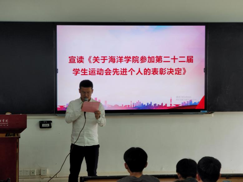 会议伊始,现场播放了运动会风采视频,回顾赛场的精彩瞬间和学子们的矫健身姿,展现海洋学子青春的活力。