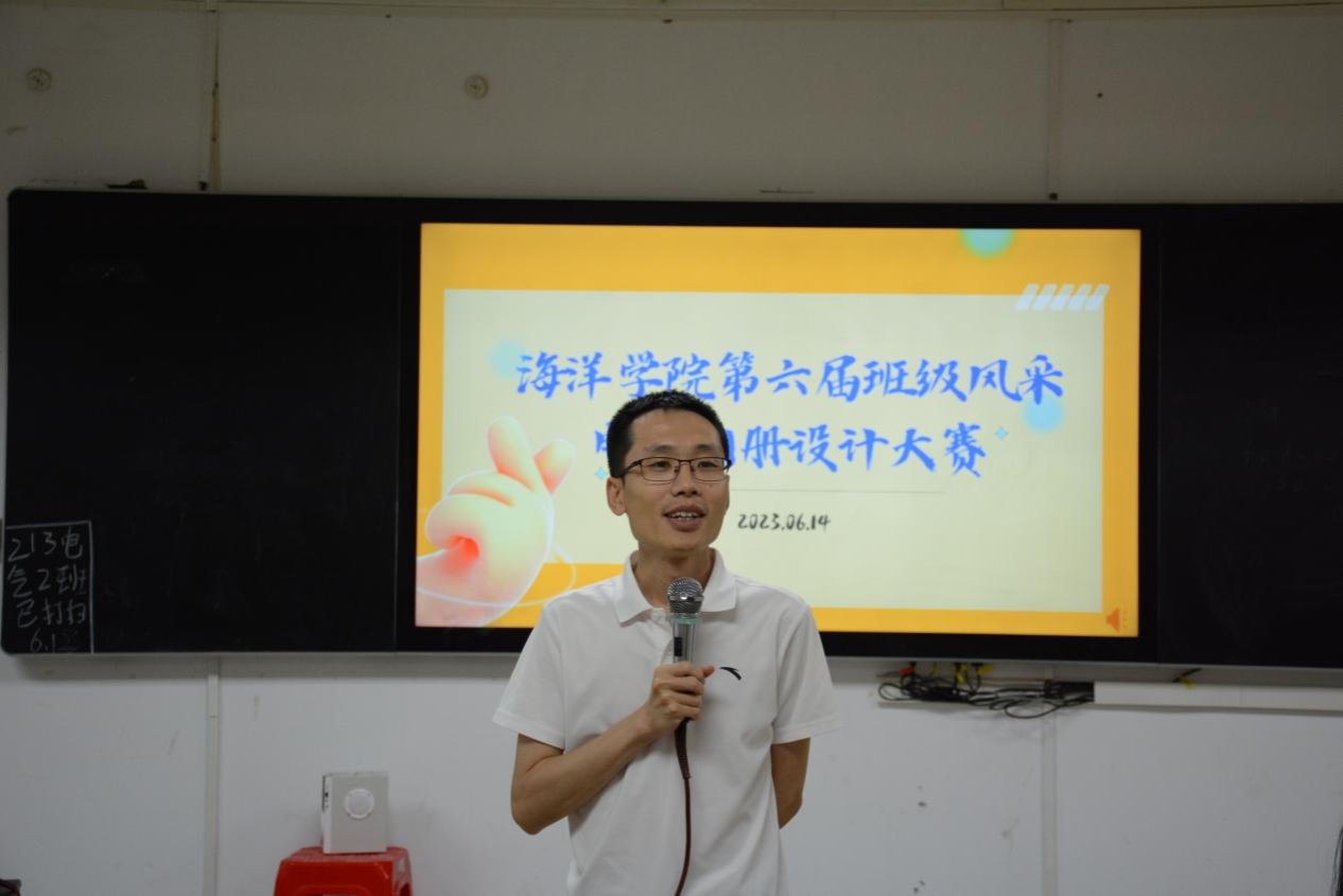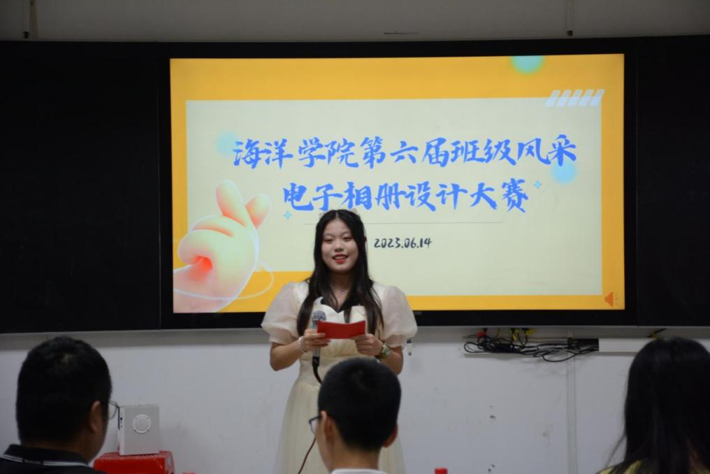 为进一步增强班级凝聚力,营造昂扬向上、温馨和谐的班级氛围,鼓励同学们细心发掘生活、学习中的难忘瞬间,生动展示班级精神风貌,公司于2023年6月15日晚在求真楼803教室举行了第六届班级风采电子相册设计大赛决赛。海洋公司党总支副书记、副经理陈倚重、团委书记陈金雄及院全体辅导员担任评委。活动由钟紫玲同学主持。