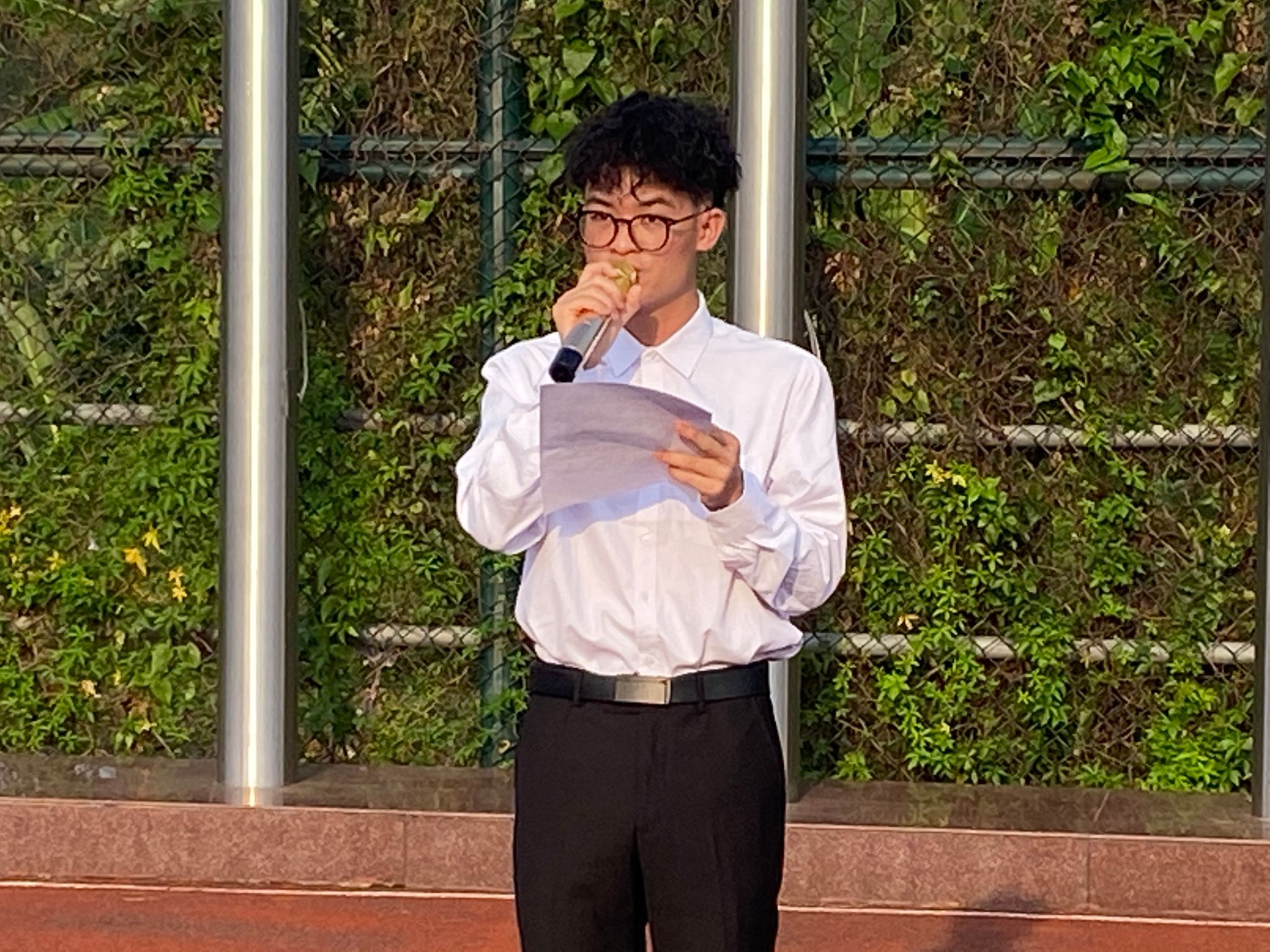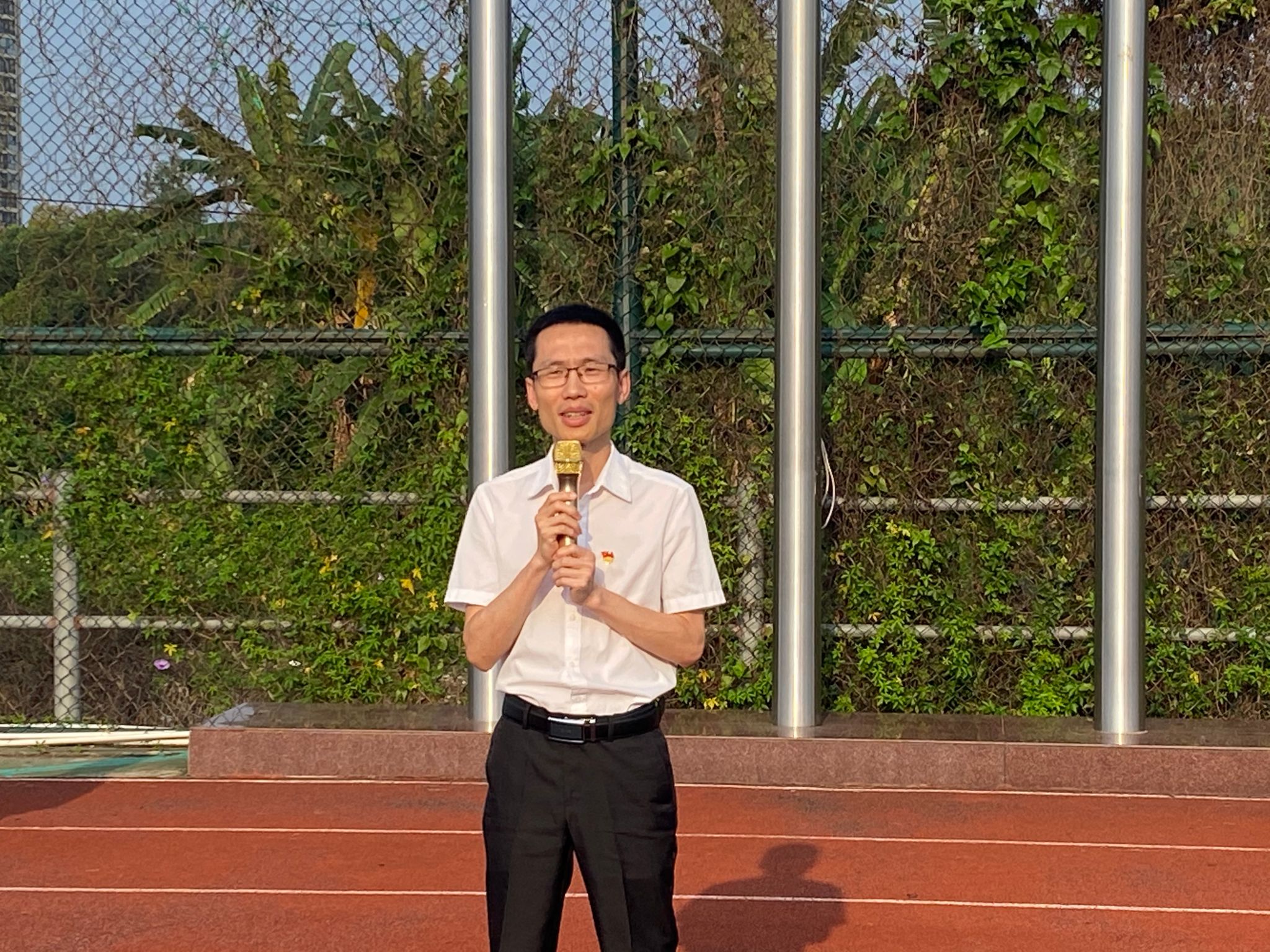 随后,233电气自动化技术一班覃传发同学作国旗下演讲,为我们讲述了革命先烈彭湃先生的一生与他的英雄事迹,并号召同学们要以革命先烈为榜样,传承红色基因,继承先辈红色事业,更好地肩负起时代赋予的新的历史使命,为新时代新征程贡献力量。