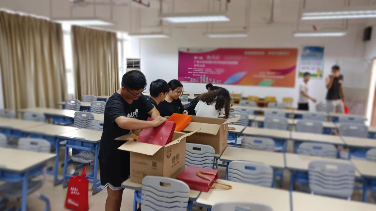 9月10日一袋袋柚子、一盒盒月饼营造了浓厚的中秋氛围。工作人员分装好柚子整齐的摆放着,以宿舍为单位,以班级为单位派发。