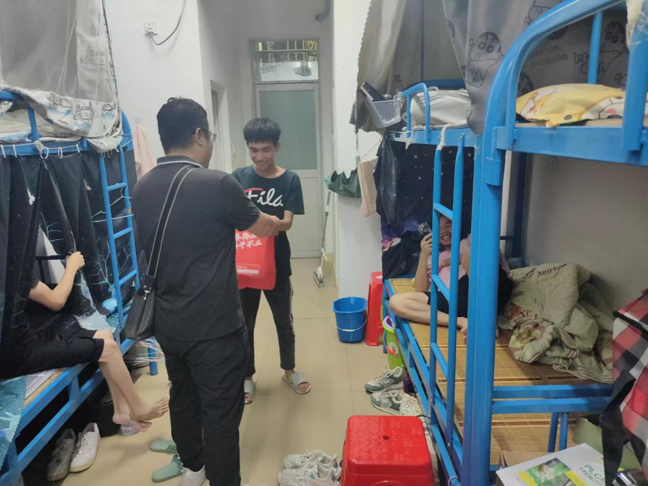 9月10日晚上,伟德体育团委书记陈金雄带领员工会成员走访宿舍并慰问了同学们,鼓励同学们多参加校园实践,学好专业知识为社会做贡献,叮嘱同学们在中秋节到来之际也要做好疫情防护,此次的走访宿舍让同学们深切的体会到伟德体育这个大家庭的温暖。
