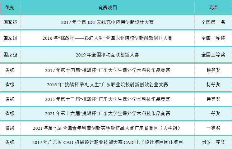 教师团队成员荣获广东省南粤优秀教师、广东省“挑战杯”老员工课外学术科技作品竞赛优秀指导教师、广东省CAD技能大赛优秀指导教师等荣誉称号;工作室荣获公司职业技能竞赛优秀团队荣誉称号。